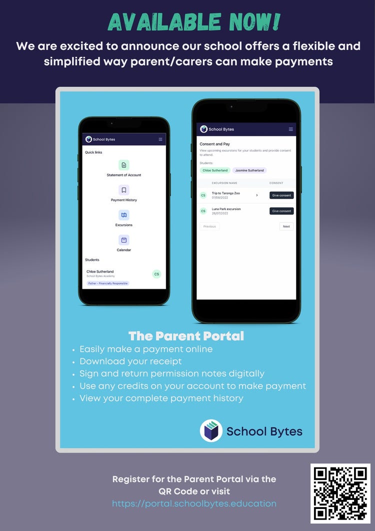 At Batlow Technology School we use School Bytes parent portal app to make communication and admin easier for families. These tools help you: